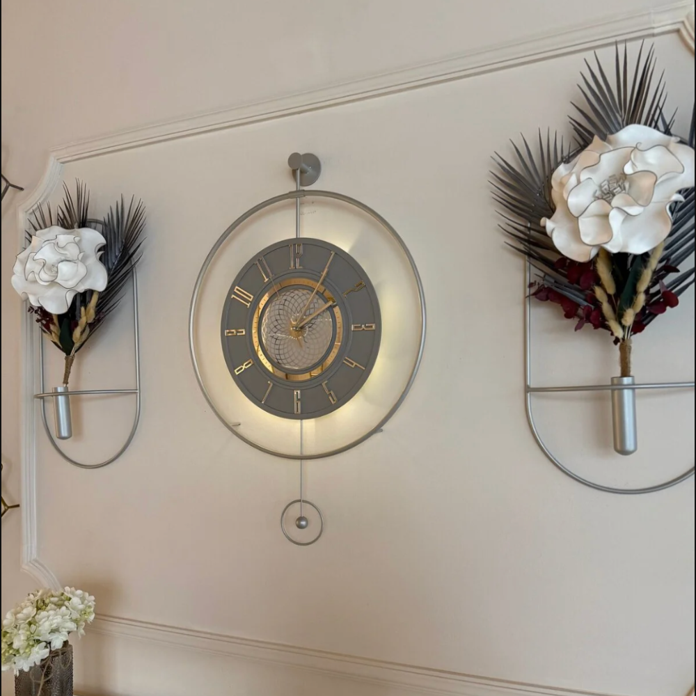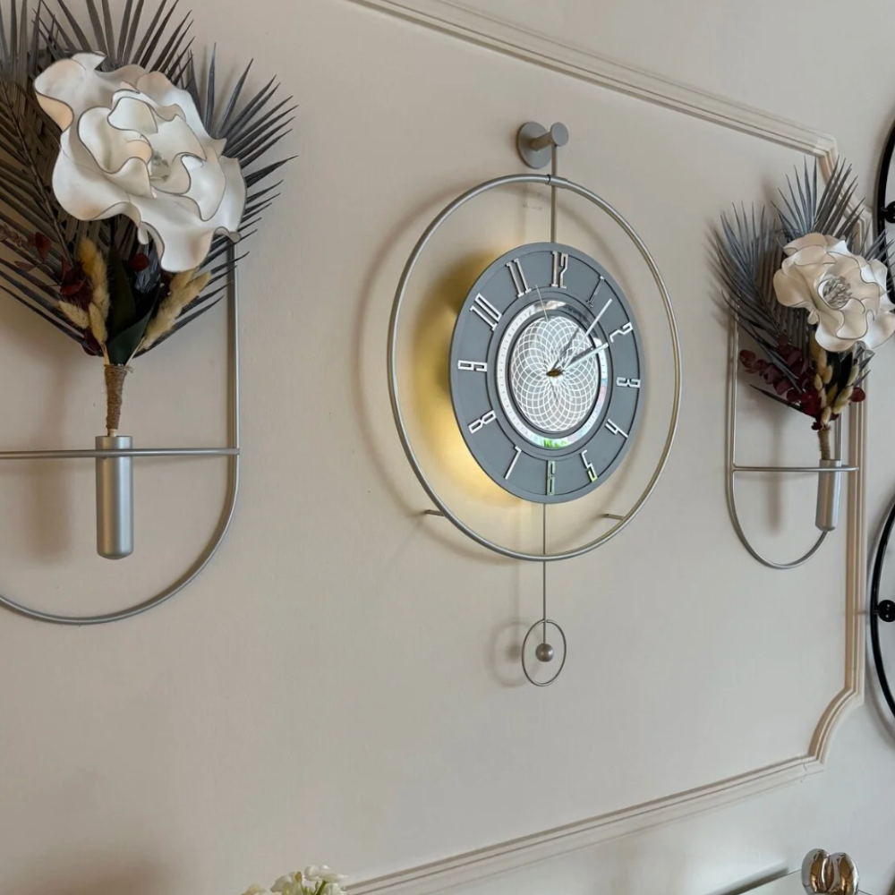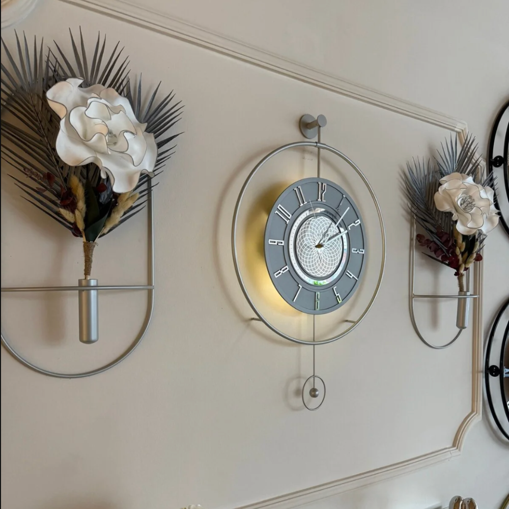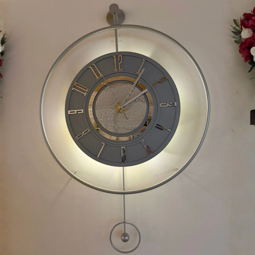 Çark Pırlanta Gümüş Ledli Exclusive Duvar Saati